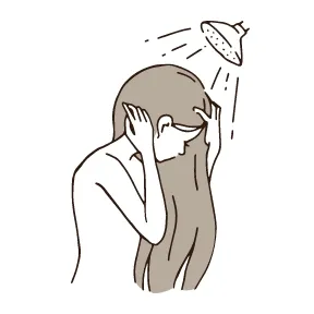 01. 髪と頭⽪が⼗分に潤うように濡らしてください。